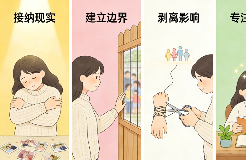 3. 区分“爱”与“伤害”:客观看待家庭关系,不全盘否定,也不强行美化,减少情绪反复。